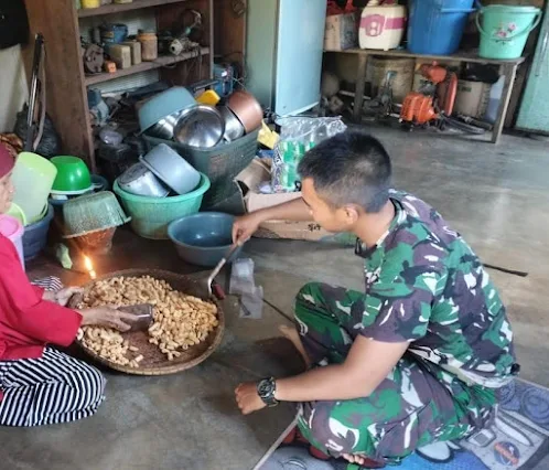 Bengkayang - Anggota Satuan Tugas (Satgas), TNI Manunggal Membangun Desa (TMMD), membantu warga Dusun Trimulya Desa Sentangau Jaya Jalan Trans Segorong Kecamatan Seluas Kabupaten Bengkayang, mengemasi kerupuk buat hidangan makan anggota satgas.